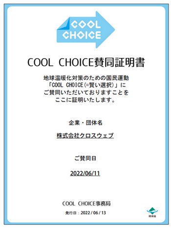 「COOL CHOICE」は、CO₂などの温室効果ガスの排出量削減のために、脱炭素社会づくりに貢献する「製品への買換え」、「サービスの利用」、「ライフスタイルの選択」など、日々の生活の中で、あらゆる「賢い選択」をしていこうという取組です。